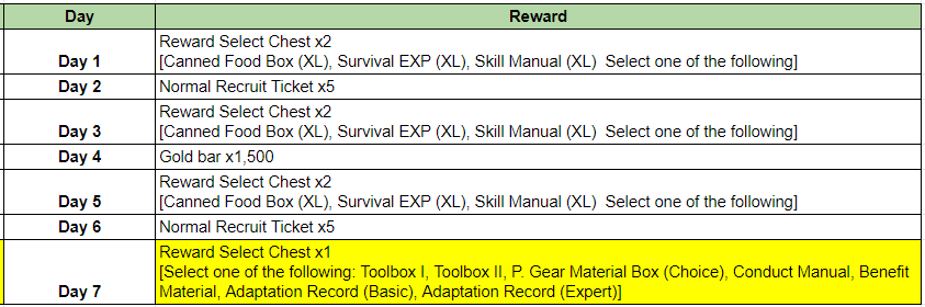 : Get rewards on the 7-Day Survival Support Event page during the event.