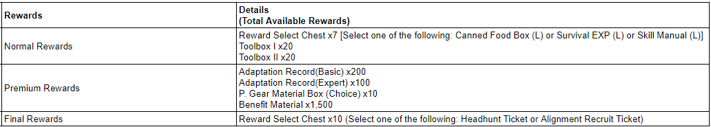 1) All rewards for [New] Survival Record can be claimed once during the event.