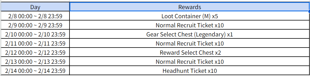 2/8 00:00 ~ 2/14 23:59 UTC