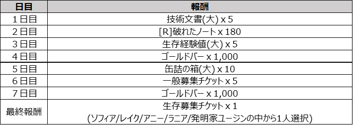 ※最終報酬は、7日目までの報酬を全て受け取ると獲得できます。