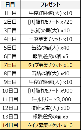 毎日ゲームにログインすると、生存支援14日キャンペーンページでプレゼントゲット!