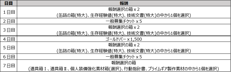 キャンペーン期間中、「生存支援7日」ページでプレゼントを獲得できます。