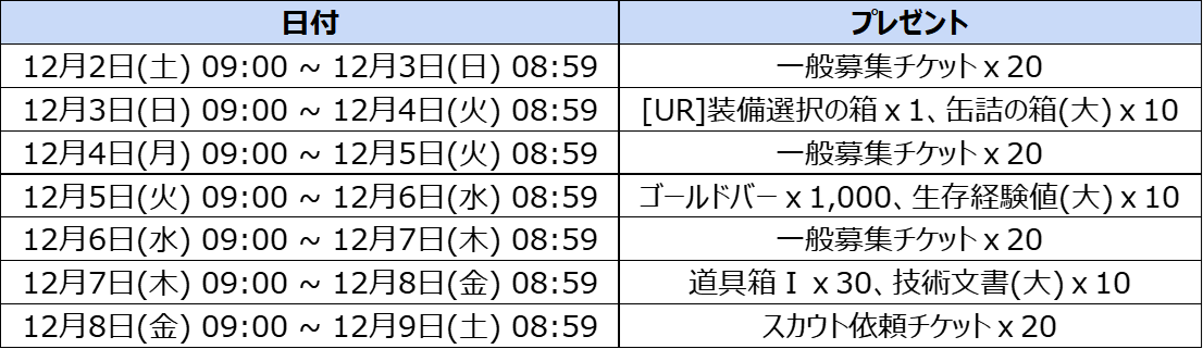 12月2日(土) 09:00~12月9日(土) 08:59 (JST)