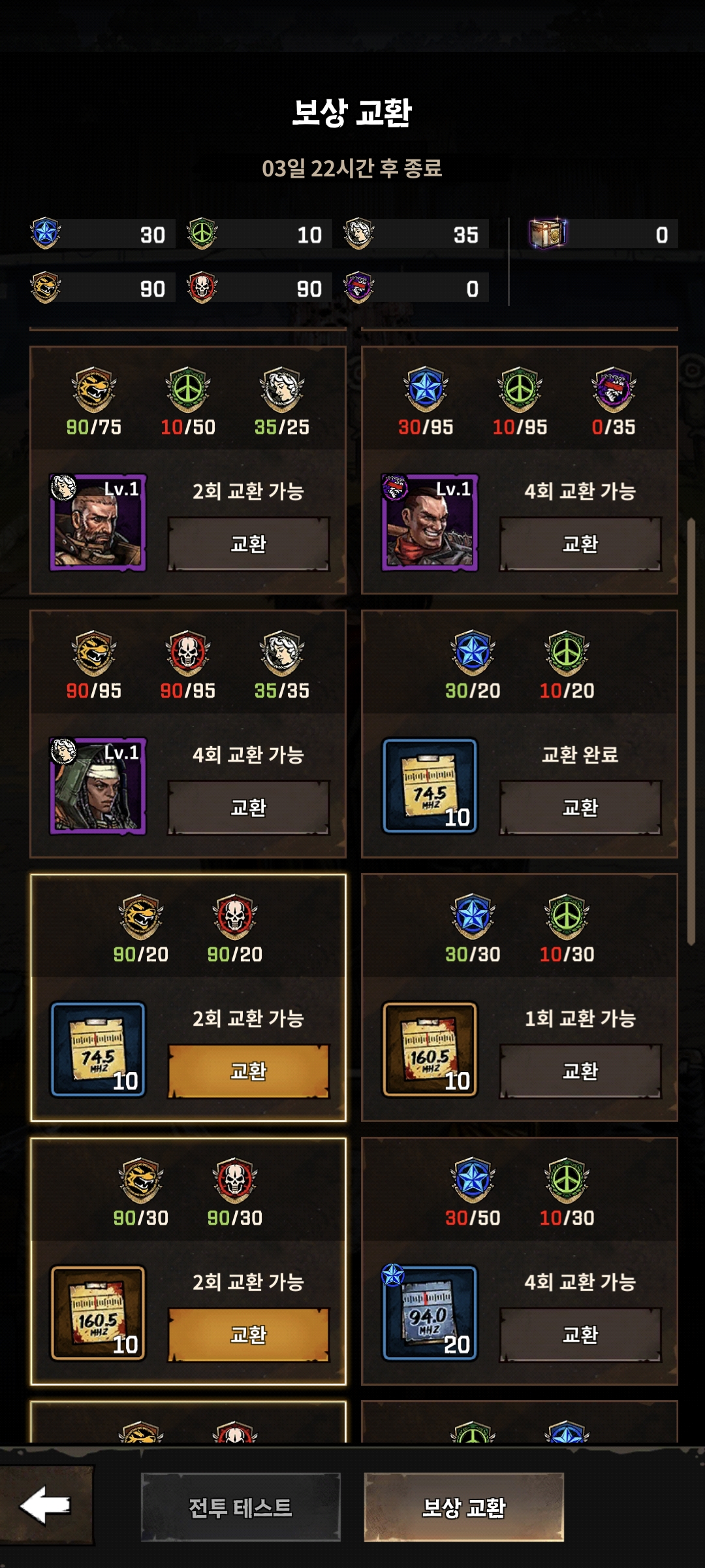 내일 증표 30개 먹을수 있으니까 딱 미숀이랑 성향 모집권 10개까지 먹을 수 있겠네요