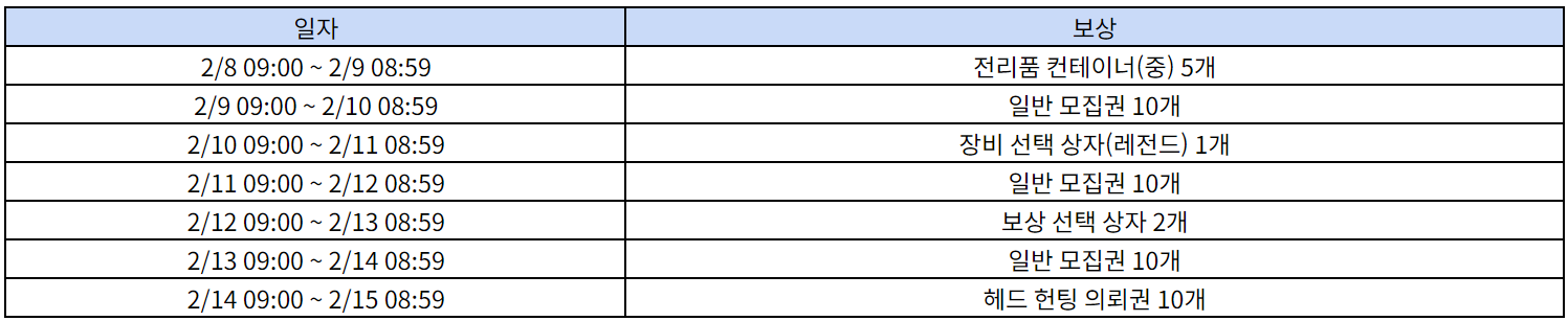 - 서버 시간 → 2월 8일(목) 00:00 ~ 2월 14일(수) 23:59
