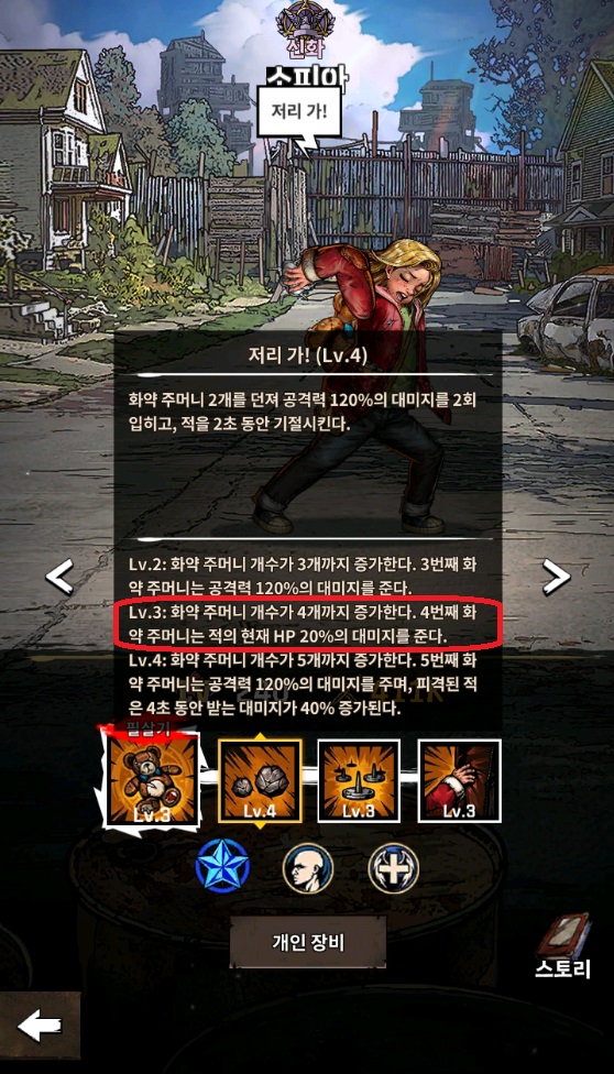 글렌의 조명탄과 소피아의 응원, 도와줘, 개인장비 등을 통해 미숀의 능력치를 올려 다른 생존자가 미숀의 누적 딜을 넘어설 수 없게 만들 수 있습니다. 거기에 더해