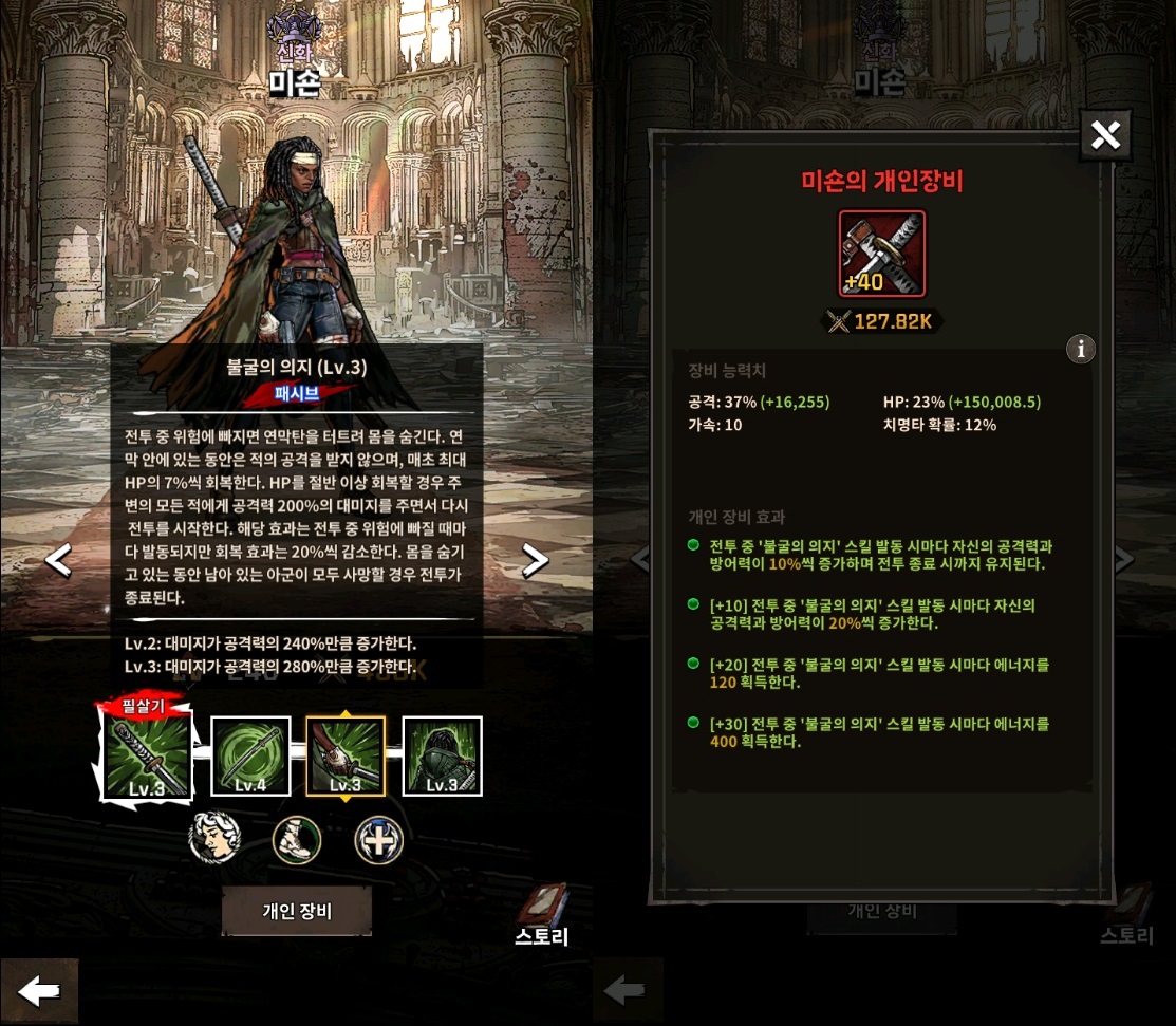 그렇기에 준수한 딜링 능력을 보유하고 있으면서 저 1스킬을 받아낼 수 있는 생존자가 필요한데 여기서 등장하는 게 아주 유명한 ‘미숀’ 입니다.