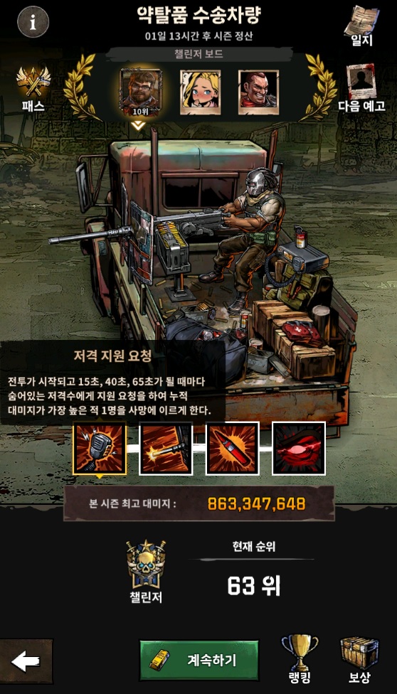 수송차량도 공동체 합동 전투의 레이더스나 시체탑마냥 4가지의 스킬을 가지고 있는데 여기서 우리가 신경 써야 할 것은