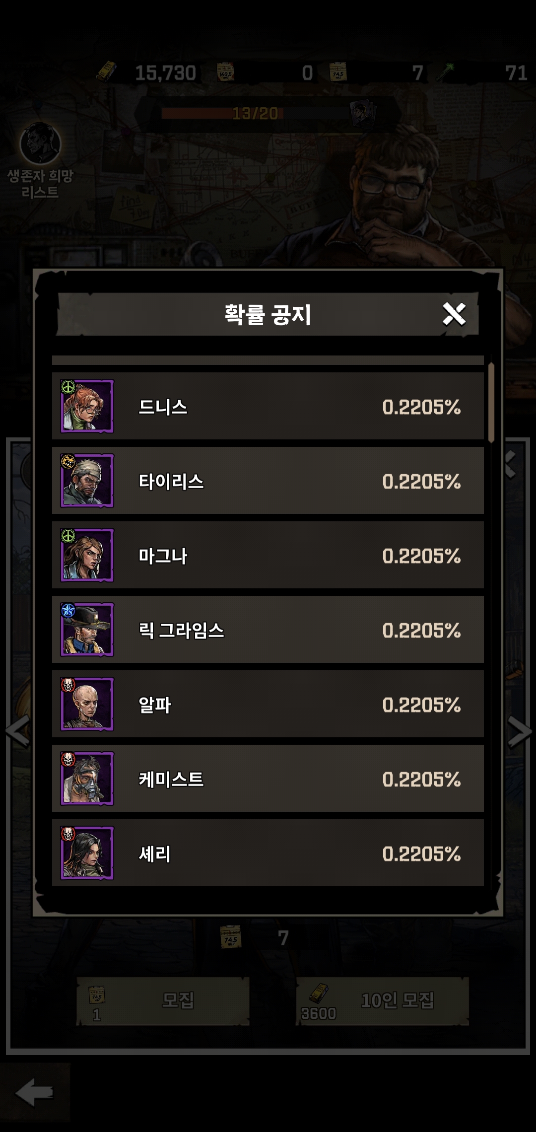 모집할때 영웅 몇명 있고 몇명은 없는데 그게 하루하루 지나면 바뀌나요? 아니면 지금 영웅 고정 되어있나요?