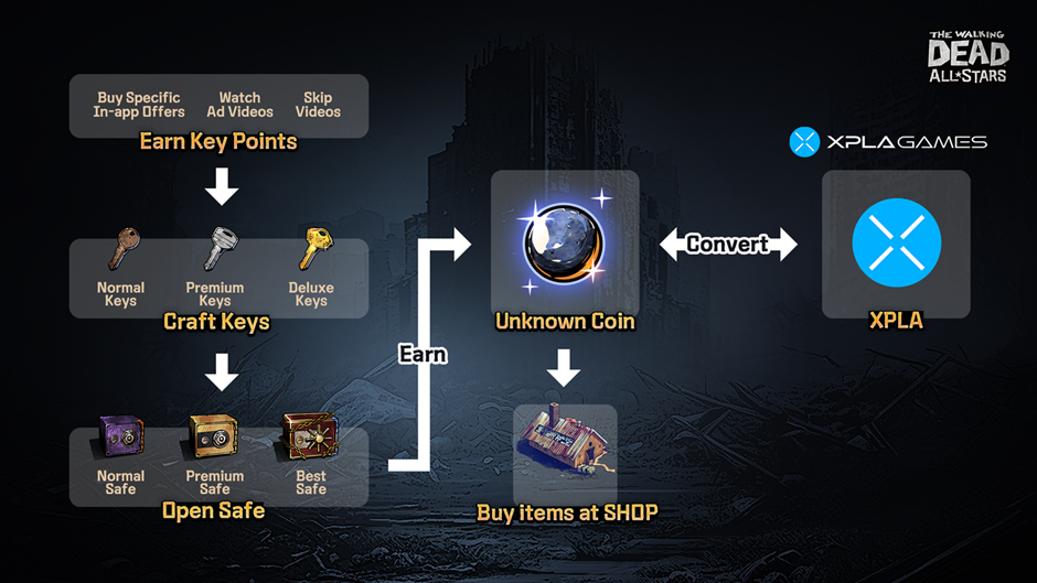 หากได้รับ Unknown Coin เป็นจำนวนมาก คุณสามารถนำหน่วยเงินดังกล่าวไปใช้ในร้านค้า Unknown Coin ในย่านร้านค้าได้ อีกทั้งคุณยังสามารถแลกเป็น XPLA ได้!