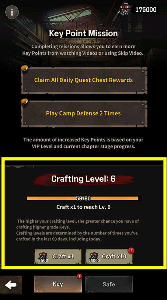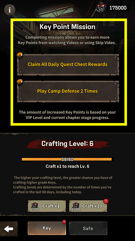 ถ้าสะสมแต้มกุญแจได้มากพอ ก็ถึงเวลาสร้างกุญแจเพื่อปลดล็อคเซฟแล้ว