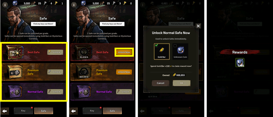 ② ตู้เซฟต้องใช้เวลาในการปลดล็อค แต่สามารถใช้ทองแท่ง หรือ Unknown Coin เพื่อปลดล็อคทันทีได้