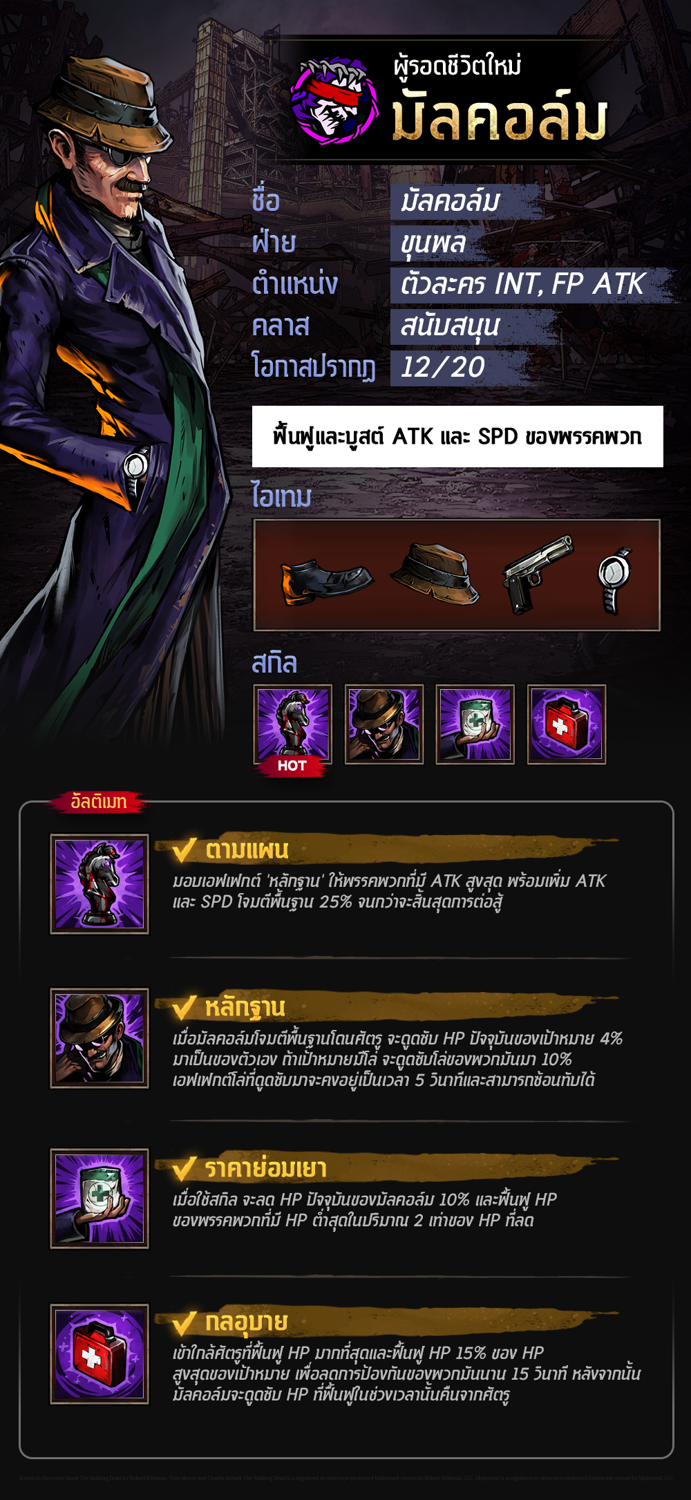 ㄴ ตรวจสอบอาวุธและสกิลของผู้รอดชีวิตคนใหม่ มัลคอล์ม!