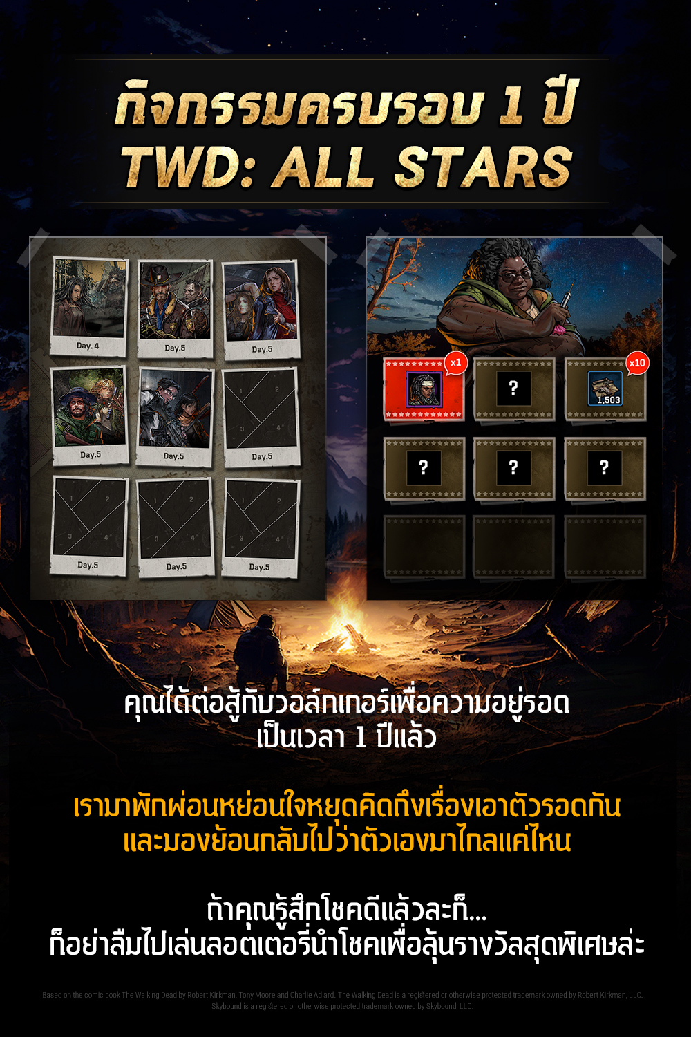 ㄴ รับของรางวัลมากมายจากกิจกรรมที่เตรียมฉลองครบรอบ 1 ปีของ The Walking Dead: All-Stars!