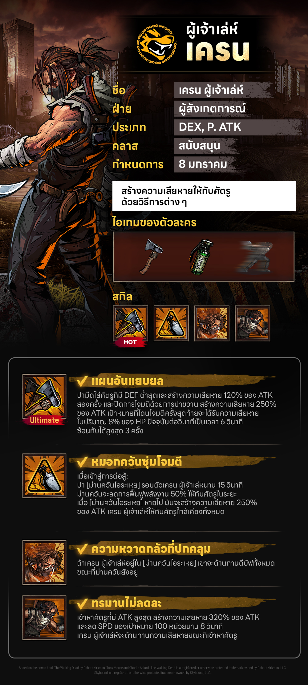 ㄴ ดูอาวุธและความสามารถของ [เครน ผู้เจ้าเล่ห์] ได้เลย!