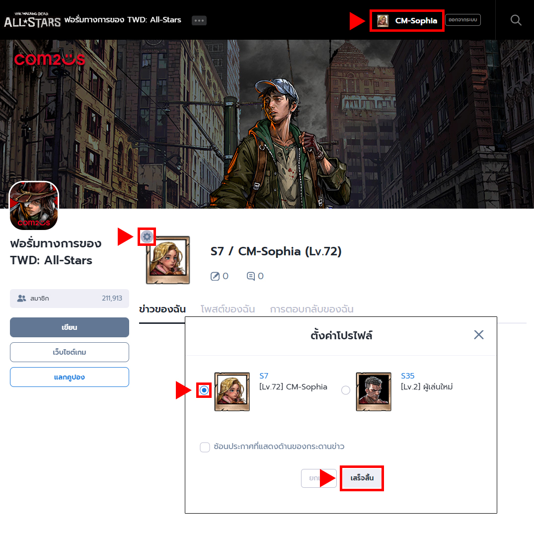 รางวัลกิจกรรมจะถูกส่งไปยังเซิร์ฟเวอร์ที่เลือกในการตั้งค่าโปรไฟล์