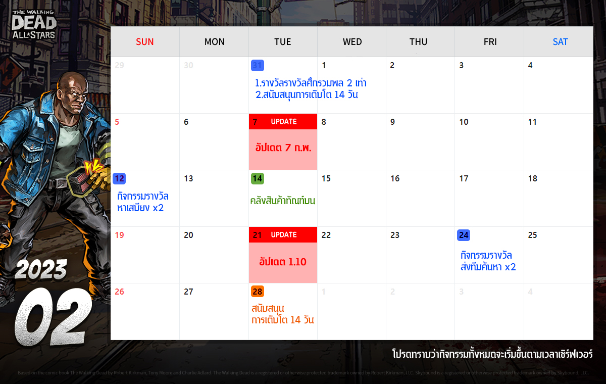 ㄴ กิจกรรมทั้งหมดจะอิงกับเวลาเซิร์ฟเวอร์