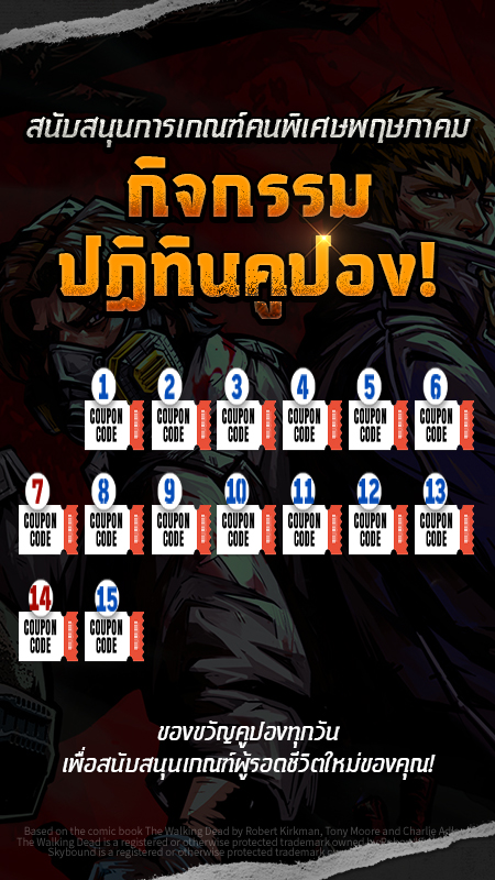 🗨️ เพียงล็อกอินทุกวัน คุณจะได้รับคูปองฟรี ซึ่งสามารถแลกรับรางวัลที่จำเป็นสำหรับการรับผู้รอดชีวิตใหม่ได้!