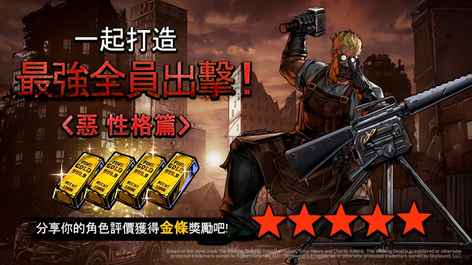 2) 完成所有角色評分及心得分享者可獲得共 【1,000金條】